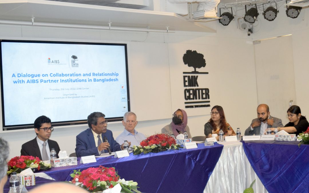 Greater cooperation and collaborative research among Bangladeshi and US universities have been emphasized in a dialogue held on 21 July 2022 at the EMK Center in Dhaka organized by the American Institute of Bangladesh Studies (AIBS). The dialogue was chaired by the AIBS President Professor Dr. Ali Riaz and attended by representatives from 23 Bangladeshi universities. Among the participants, several senior university administrators such as Vice-Chancellors, Registrars, Deans of the Faculty, Chairman of the Departments and Professors, representatives from the Ministry of Foreign Affairs, Government of Bangladesh, and the U.S. Embassy were present at the event.